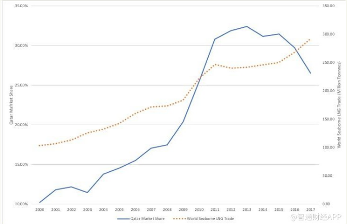 卡塔爾在歐佩克中屬邊緣國家,但其在液化天然氣市場上卻有著領(lǐng)導(dǎo)地位,再加上對原油長遠(yuǎn)可持續(xù)性的擔(dān)憂,卡塔爾最終作出這一務(wù)實(shí)的決定,即將其政策的重點(diǎn)重新放在天然氣開發(fā)上。